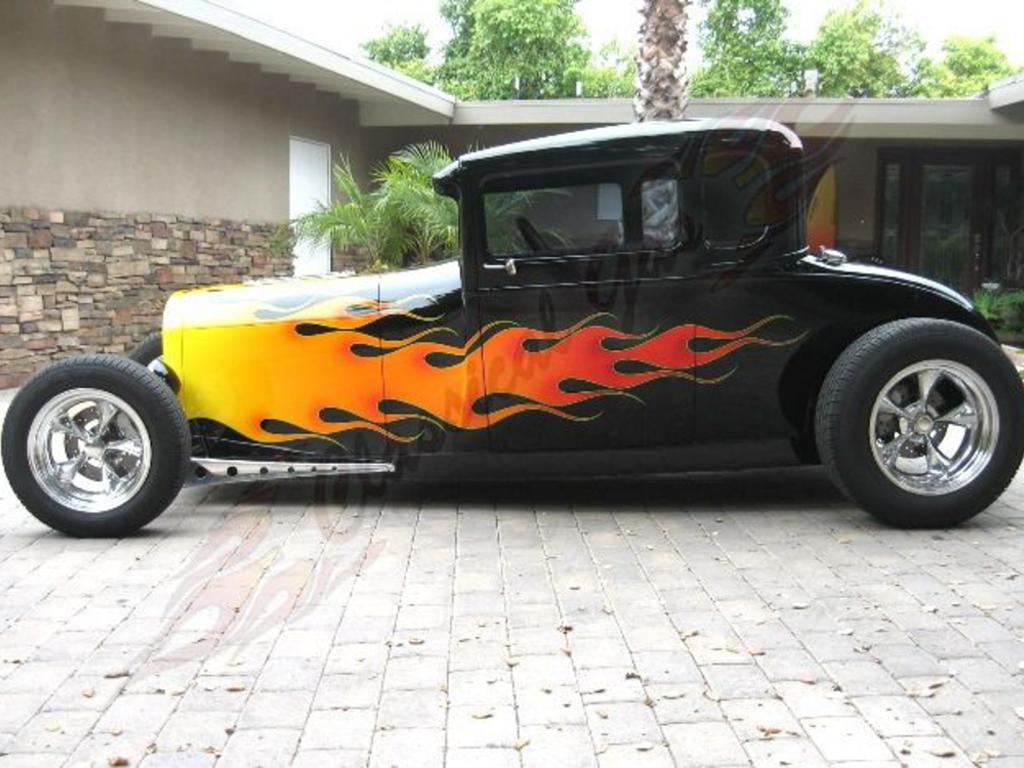 1929 Ford 5 window coupe before you saw a reality tv show on every channel cameras were following around the legendary boyd coddington as he rose to the top of the custom car world on his show american hot rod. Shows like this along with barrett jackson introduced the rest of the world to the classic car hobby we all know and love. Although this 1929 Ford custom hot rod was approximately 75omplete at the time of boyd's untimely and all too early death, the final product as finished by master fabricator and builder, jeff eischen, is 100ooddington styling and design. The car is actually the last car worked on before his death in 2008. The steel body was chopped by marcel's custom metal shaping who also fabricated the hood and hood sides. Doing everything in house boyd's shop fabricated many one-off chassis components such as the torsion bar front suspension, bat wings and drilled wishbones. The car is coated in a deep black that is topped with beautifully laid out hot rod flames. The car has a great look with some great body lines. The profile of the car is not like most street rods you see nowadays sitting nice and low to the ground without an extreme chop that you typically see. It has been shaved with nice smooth doors and deck lid. Round headlights are found up front and are nicely coated in black. It wouldn't be a coddington car if it wasn't rolling around on the world known coddington wheels. This car sits on nicely polished coddington true knock offs with brand new 15" and 17" radial tires. Powering up this classic is a 350cid chevy vortec engine that packs plenty of torque. The motor is topped with barry grant's six shooter intake with 3 demon 98 carburetors that are perfectly adjusted. Every thing has a nice finish with a polished eishen designed/built finned air cleaner that matches the finned hildebrandt valve covers. Other cool under hood stuff includes a hunt magneto style electronic distributor, electric water pump, and a one-off breather system. The transmission is a tci turbo 350 coupled to a winters quickchange with coddington designed and fabricated rear cover and axle housings. The leather interior has many custom designed features including the seats, door panels with billet spears and tachometer pod. This is all complimented by the classic stewart warner gauges in a traditional cluster housing by hot rods by dean. The dash is cleanly coated in black and works perfectly with the gauges. A polished tilt column is in place and topped by a custom wrapped polished billet steering wheel. This significant hot rod has never been shown and has test miles only. That means you have a chance to be the one to introduce it to the world. The car is beautifully done and will put all of those other street rods to shame. Boyd was a visionary in the hot rodding industry and is an icon in the hobby. Make this amazing street rod yours for $135,000.00!