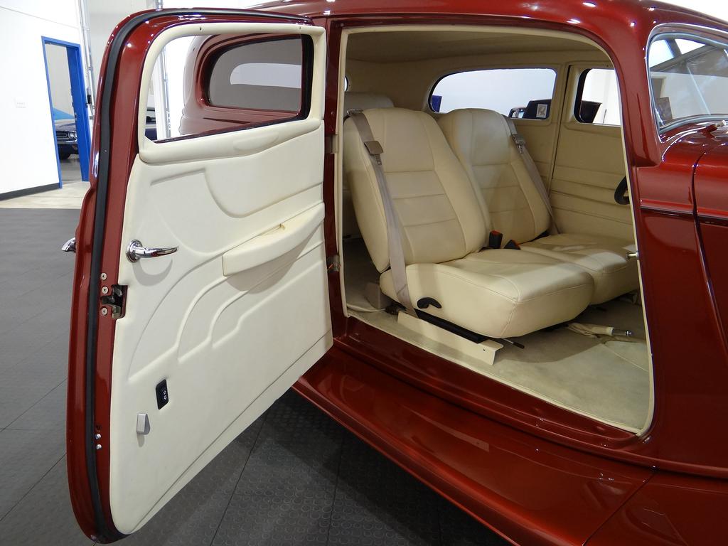 1934 Ford tudor for sale in our indianapolis showroom. This '34 Ford tudor is powered by a zz4 350 cubic in v8 engine backed by a 3-speed automatic transmission running to a Ford 9" rear end running 3.50 gears. Options on this 1934 Ford tudor for sale include: air conditioning, seat belts, leather interior, power windows and bf goodrich touring t/a radial tires wrapped around american racing wheels. The build on this impressive street rod was completed in 2004 and the classic is offered for sale with just 12,252 miles. The build started with a downs body and frame. A 355hp zz4 crate engine was then added and paired with a 3-speed automatic transmission. The crate engine is dressed in chrome and has a walker radiator with an electric fan to keep the classic running cool. The '34 tudor is painted cadillac red and looks great with tasteful pinstripes and off-white interior. Inside you will find vintage air, ididit tilt wheel, autometer gauges, lecarra steering wheel and plenty of extra room for the family in the back seat. Other highlights include: heidts front suspension, stainless steel exhaust, stainless steel gas tank and ron francis wiring. The build on this beautiful '34 Ford tudor is documented via photographs that are included with the sale of the car. Only the best components went into the build and the quality shows in this stunning street rod. The classic has won many trophies in the past and is sure to rack up more in the future. This 1934 Ford tudor for sale is located in our indianapolis showroom and can be seen at, or call for additional information.