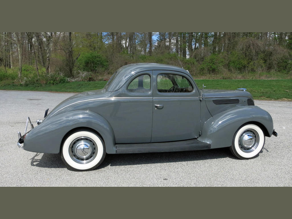| 1938 Ford Deluxe coupe, 49,000 miles, totally rust free, gorgeous gull gray paint, fantastic original tan cloth interior, smooth 221 cu in 85 hp flathead v8, 3-speed transmission, 12 volt conversion with alternator, rare radio, accessory defroster, Deluxe heater, dual side view mirrors, bumper guards, grill guard, wide white wall tires, trim rings, original tools, fabulous car, runs and drives great, must see! Please call carlo connors at, or email at, or visit |