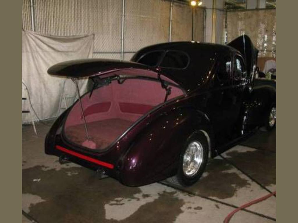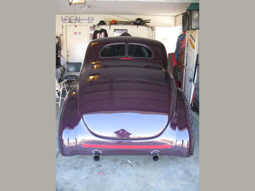 | 1940 ford standard - vehicle to be offered for auction sale june 5th 7th, 2015 at russo and steele's 3rd annual newport beach california auction. Please contact us for more information. 'this 1940 ford standard coupe is finished in rich gm black rose paint, complemented by pin striping. The interior has power bucket seats in burgundy and maroon leather and tweed. The trunk, headliner, and door panels all match. It was built by one of the best rod builders in the nation, larry tripp, of tripp built cars. It has an all-steel body, fuel injected lt1 with street and performance accessories, a gm 4l60e 4-speed automatic overdrive trans, 8-inch posi ford differential, mustang ii front suspension, and power steering, brakes, and windows. It also features vintage air cooling and heating, billet specialties legacy rims, tilt, pioneer deh-150mp am/fm, cd with remote, all electronic vdo gauges, and a custom-built dash. The hood has been nosed, the trunk lid decked, doors shaved, and fenders molded to body as one piece, and it looks incredible. The tail lights and 3rd brake light are recessed, with multiple lights with sequential turn signals, and the license plate in rear folds up when parked and folds down when leaving the award presentation at the car show. This is a upper end show car that likes to roll. It will get out of the hole fast while cruising up the pch at 80 and just 1,700 rpms. |