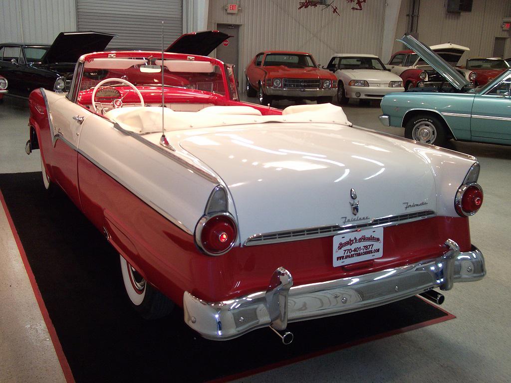 This is a beautifully restored 1955 Ford Fairlane sunliner that is ready to be enjoyed! 292 v-8 cruise-o-matic automatic transmission complete restoration in 2000 approximately 1,000 miles since restored only 2 owners since new original owners manual and keys new power convertible top white convertible top boot chrome, glass and stainless are in excellent condition new magnificent base/clear paint complete new interior, correct style rust free body, laser straight engine compartment and undercarriage professionally detailed wide white bias ply tires stock am radio all working gauges excellent running and driving car this car has a great curb appeal from any angle and any distance. This is a show winner!
