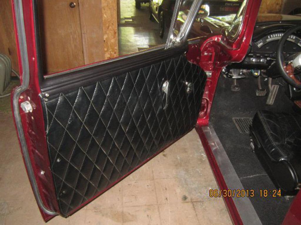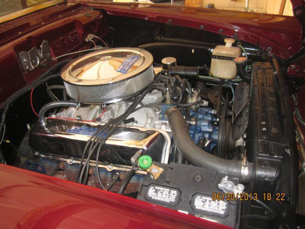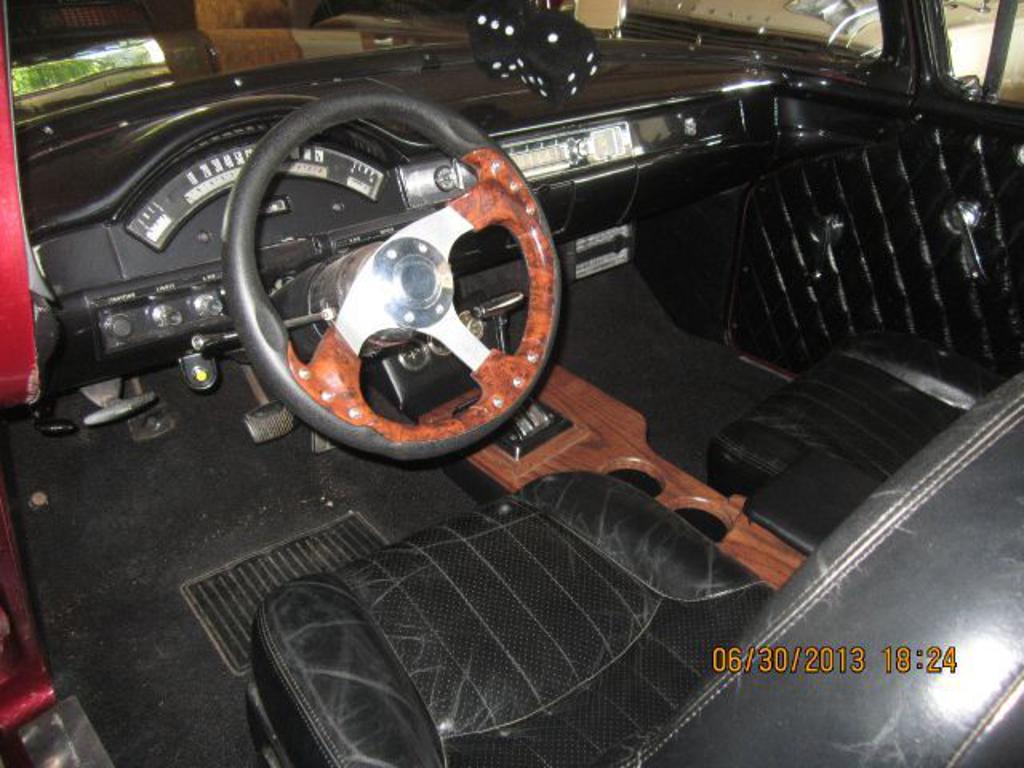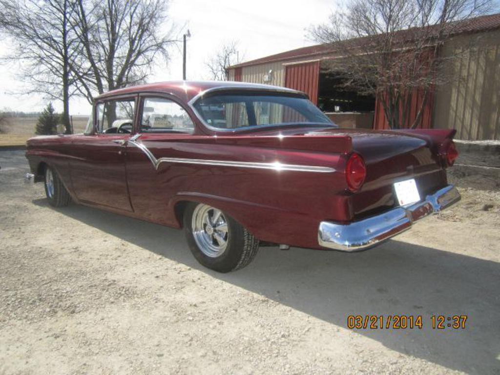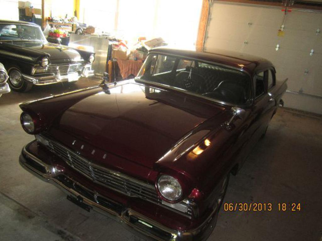 | 1957 ford custom tudor sedan - fresh 1970 429 motor with oval port heads, edelbrock intake, holly 600 cfm, hi-lift cam. Fresh c-6 automatic with custom built floor shifter. ford 9 r/e. All new front end suspension with rack and pinion power steering. Chrome tilt steering column & steering wheel. New shocks, new chrome dual chamber master cylinder with disc brakes. New radiator with electric fan, new wiring harness, fuse panel, electronic ignition system. Nicely detailed under the hood with lots of chrome and aluminum bling ! 15 crager wheels/tires. 2 lowering kit all the way around giving this car a great '50's stance. Exhaust has a very nice throaty / mean / mellow sound. Fresh paint job in candy brandy wine that glistens in the sun and all the new chrome, grill, bumper and trim pieces shine nicely. The interior has just been completed, sits, feels and looks great with matching color coordinated fabric / naugahide . The new interior looks great with the excellent exterior paint job. Fantastic car that you will enjoy to drive and take to many car shows !! Call wayne & shirley today .. |
