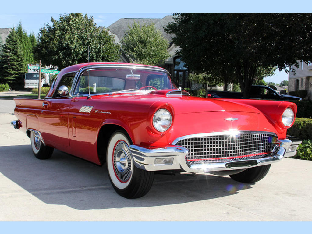 1957 Ford Thunderbird vin d7fh395561 this beautiful Thunderbird is a 3 owner car from oklahoma. The original owner had the car restored in the mid to late 90's. The car was then sold to a gentleman in tennessee shortly after it was restored. He had it for a couple years and then sold it to a gentleman in indiana, who has owned the car until now. The car was only driven about 3,500 miles since the restoration. The car was always stored inside and very well cared for! Mechanics 312ci v8 engine edelbrock carb automatic transmission open rear end with 3.10:1 gears Thunderbird aluminum valve covers exhaust manifolds generator upgraded to 12 volt heating components are intact original stamps under the hood stock type distributor manual steering 4 wheel drum brakes new brake lines solid dual exhaust system rear shocks are in great shape electric fuel pump new gas tank body all original metal beautiful red paint red hard top, no soft top chrome and stainless is in great shape door lips and jambs are clean and solid nice fit and finish solid straight body work fender skirts clean trunk with nice mat spare tire and jack undercarriage still has factory undercoating all original floors and frame are solid rockers are straight and solid widewhites 7.5x14 hubcaps are in great shape interior beautiful red interior bench seat floor shift radio beautiful dash and gauges steering wheel is in great shape nice red carpet and floor mats door panels are in great shape don't miss out! Call tom 7 days a week at !
