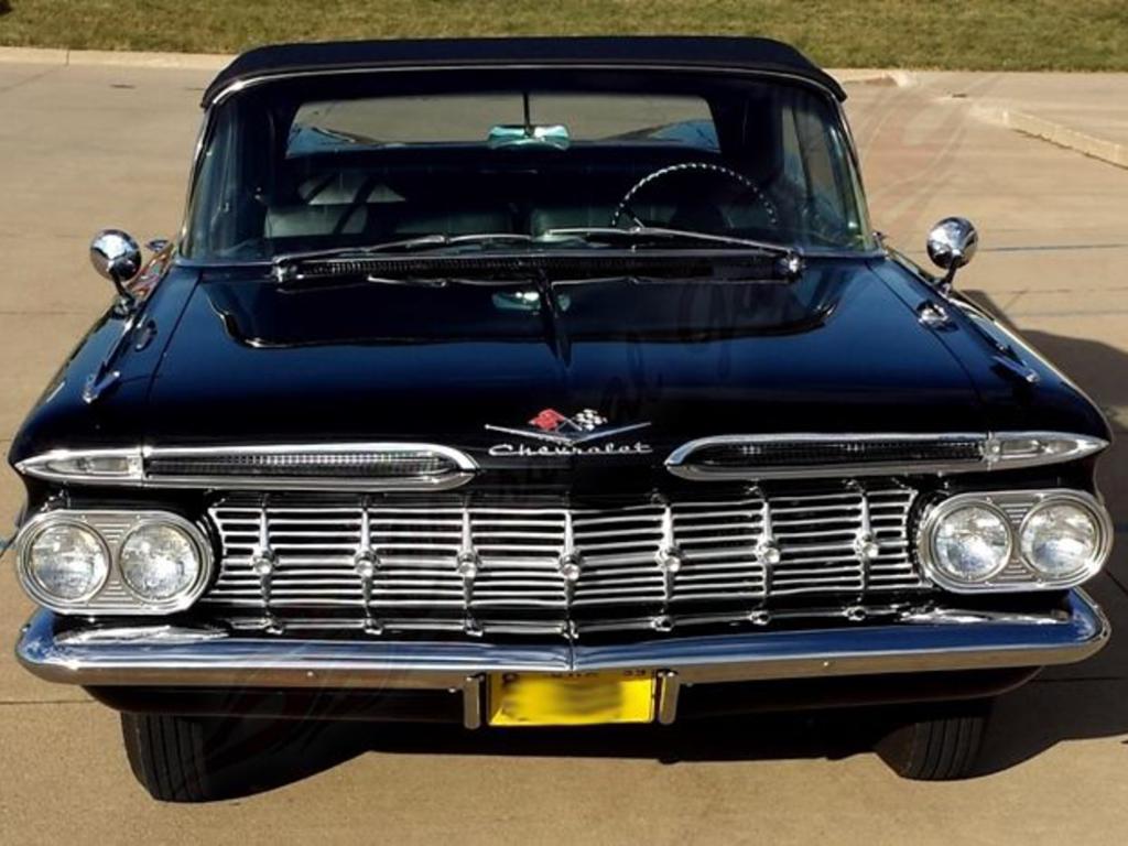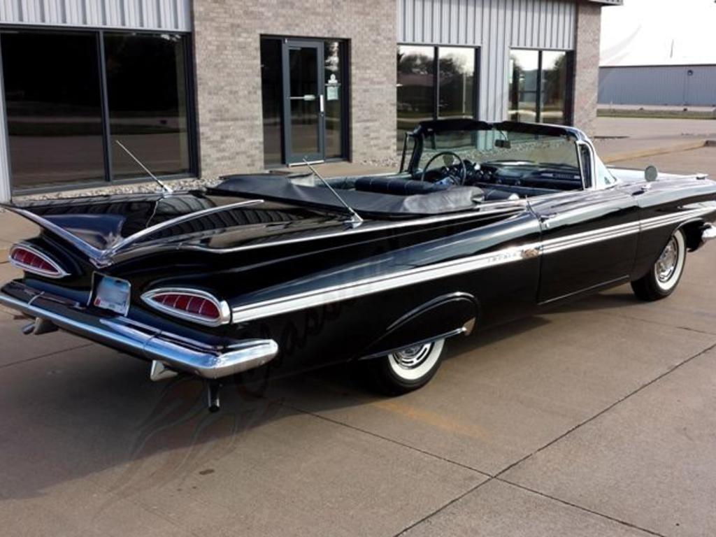 1959 Chevrolet Impala convertible if you know your car history you are probably well aware that after premiering the Impala name in 1958 for the highest tier of bel air the over all look of the car was drastically changed a year later in 1959 where Impala became its own series of car. This 2nd generation Impala would only be around for 2 years but was widely accepted as one of the most popular models put out by Chevrolet. The 2 door bodies gave the cars a sporty look from the outside but crawl into the roomy interior and you will find they were much more suited for families or those requiring a full size back seat. The stretched out body started to take on a much different appearance than other cars of the decade giving rise to the much more squared look of muscle cars in the 60's. However, the Impala still had those classic 50's fins, but presented them in a different way. These fins now stretch to the sides of the car and without a doubt created one of the most widely recognized rear end looks ever made. With two long side ways tear drop style taillights stemming from a long piece of trim running down the side the car just has that "classic style." the beautiful 1959 Chevrolet Impala convertible presented here has been restored very well and is in very clean condition. It was originally purchased on february 28, 1959 from manning motor co. And has been extremely well cared for since. It has since undergone a full restoration where all items were restored to original except for the halogen headlights. These cars are widely sought after and being a convertible just makes it that much more desirable. The body is coated in a very nice black that combines with all of that classic chrome and stainless trim perfectly. The body work and painting was extremely well done and completed by van wyk auto body in orange city, ia. It is a base coat/clear coat with the paint being ppg dbc-g 2006 code 41 u black. The black convertible cloth top is in great shape and raises/lowers with ease. All of the glass on the car is brand new with no signs of damage or issues. All of the emblems, fender mounted side mirrors, trim etc are there and are cleanly mounted in place. All of the chrome and stainless is either brand new or restored by sioux plating company or industrial plating out of nebraska. The car has a nice stance and sits on the original style wheels/hubcaps that look great. These are then wrapped with wide white wall tires that look perfect peaking out from under the fender skirts in rear. Mechanically the car is in outstanding condition being all professionally done by eason's shop in ia. The 348 v8 4 barrel motor was worked over by the shop as was the rear end, brakes, cooling system and power glide transmission. Everything is in good working condition and has that nostalgic look being painted a combo of black and Chevrolet orange. The interior of the car is complete with the original style upholstery work and is done in grey colors as opposed to the typical red you see in every black Impala. This gives the car a bit of uniqueness and really helps it stand out among the other Impalas out there. The upholstery, side panels, carpet and top are all new and just as the exterior all of the trim, chrome work, door handles, etc are in place and all looking great. The trunk is finished out nicely too and houses a spare wheel. For the popularity of these cars and level of this restoration you won't find another quite like it for only $93,500.00!