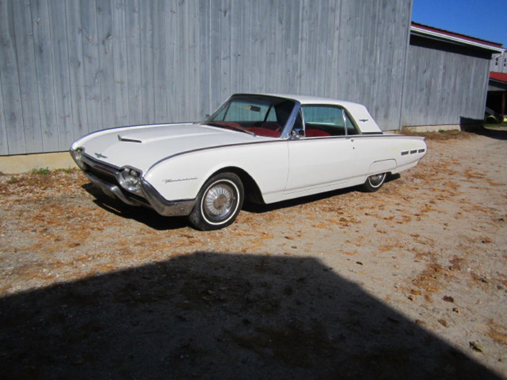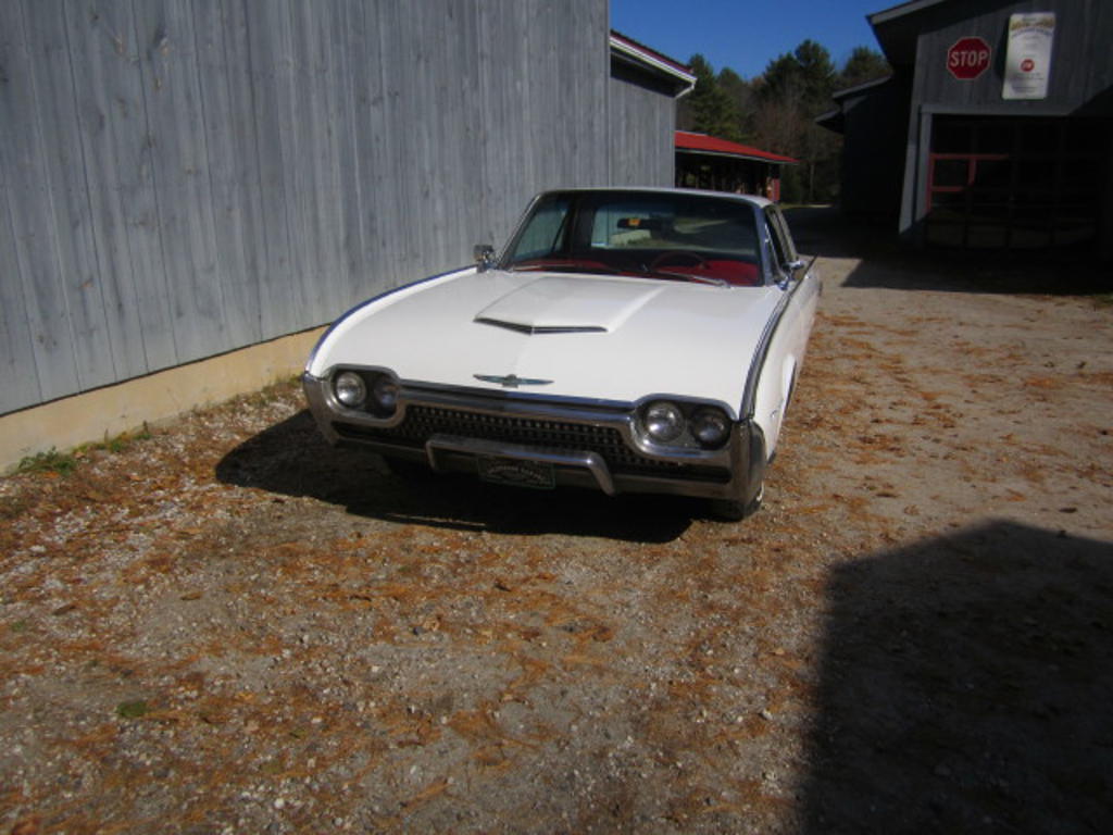 1962 Ford Thunderbird coupe,in corinthian white,just retrieved from a lengthy museum display.it has a solid body,like new red interior,and good mechanics, which we are currently "tweaking"