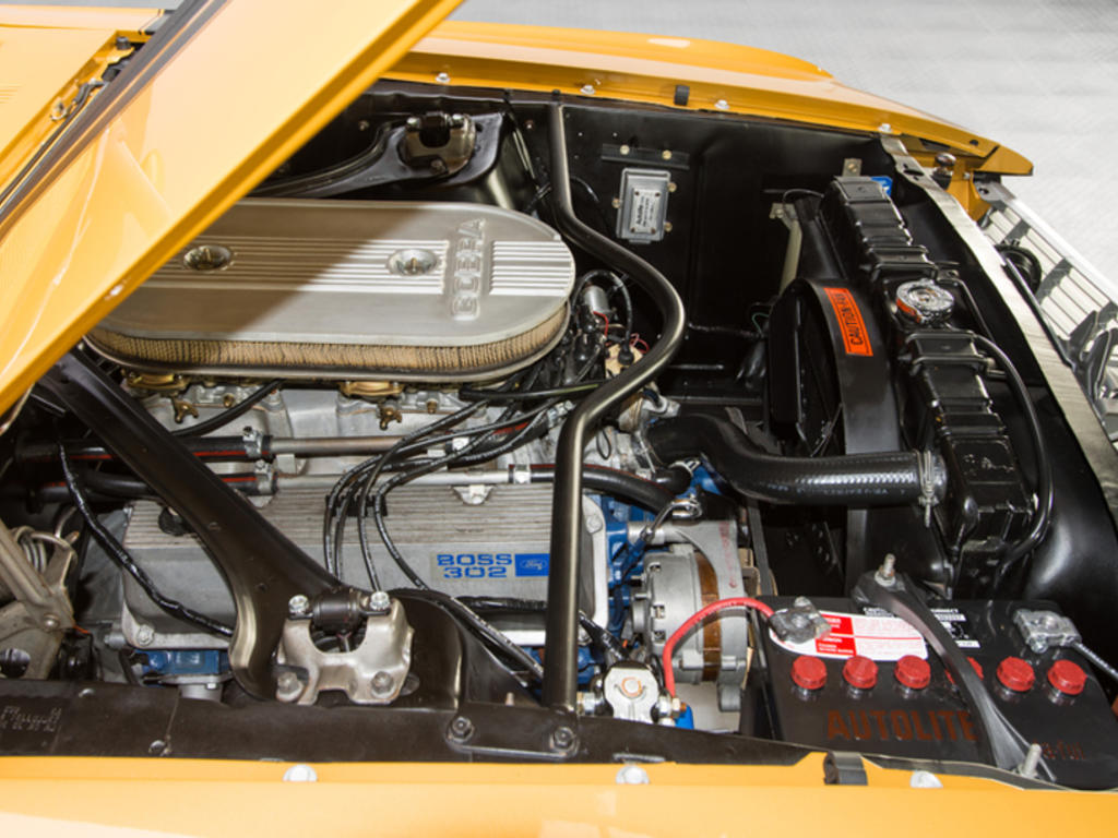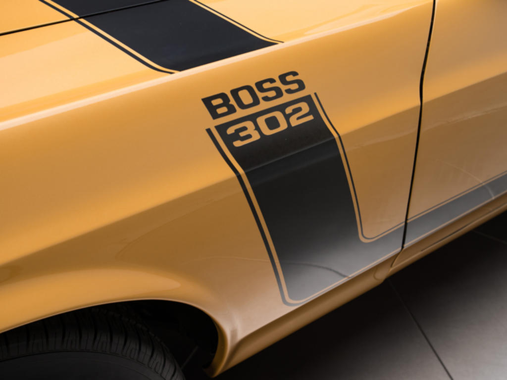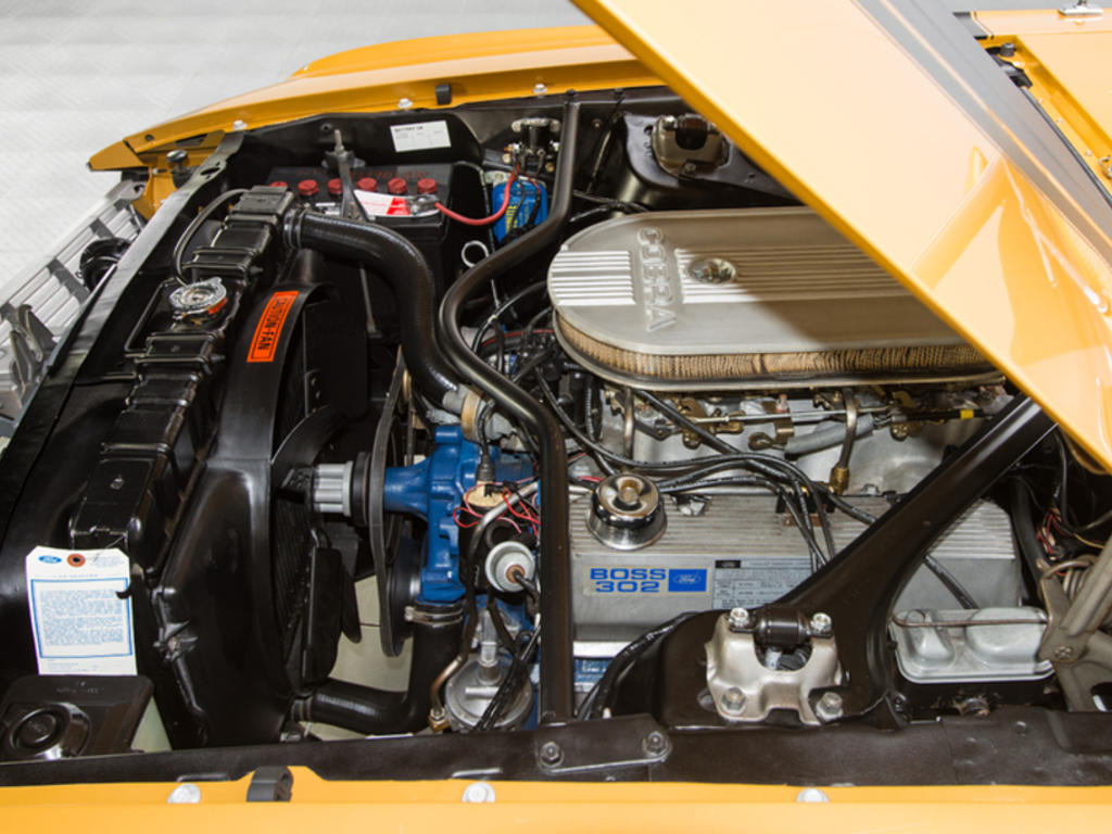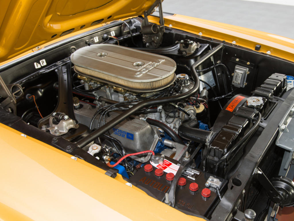 | This 1970 boss 302, equipped with rare shelby dual-quad induction, is a fully documented, magazine-featured award winner that's considered the ultimate small block Mustang. If you're a prospecting enthusiast who's looking for long-term gains via a pristine example of one of the finest pony cars ever produced, this world class Ford is the classic you've been craving! Not too long ago, the car's solid body was the beneficiary of a thorough restoration that primed bare, mostly original metal for a correct and glossy coat of bright gold metallic two-stage. Once that even pigment was buffed to an excellent shine, a full array of factory war paint tapped into an aggressive demeanor that's both classic and fitting. And today, the car sits as a revered collection of well-aligned panels and ridged character lines that presents a stunning, show worthy appearance. Never disassembled, and still churning to factory specifications, this Ford's 302 cubic inch windsor small block utilizes cleveland-style heads, a race prepped crank, a solid lifter cam, heavy duty rods and forged pistons to create over 290 horsepower. Behind that motor, a wide-ratio 4-speed spins a correct traction lok differential around competent, road-ready gears. At the ends of that drivetrain, standard manual steering combines with power front disc and rear drum brakes to provide competent track capability. In the middle of the floors, a fresh true-dual exhaust system pipes roasted dinosaurs through an h-shaped crossover and thin, glasspack-style mufflers. And at the sides of that exhaust, mirrored magnum 500s twist meaty 245/60r15 bf goodrich radial t/as around galloping horse center caps. This professionally restored boss is a documented, fully-sorted gem that drives and sounds every bit as good as it looks. If you're a dedicated purist who desires only the best, call, click or visit for your chance to own the ultimate muscle car! |
