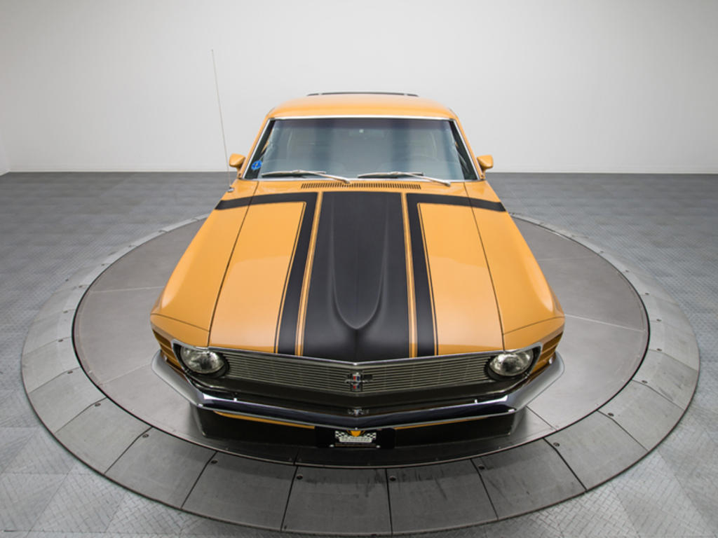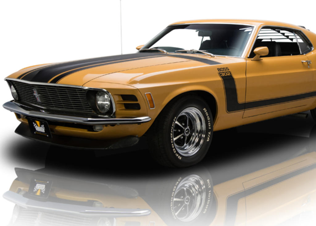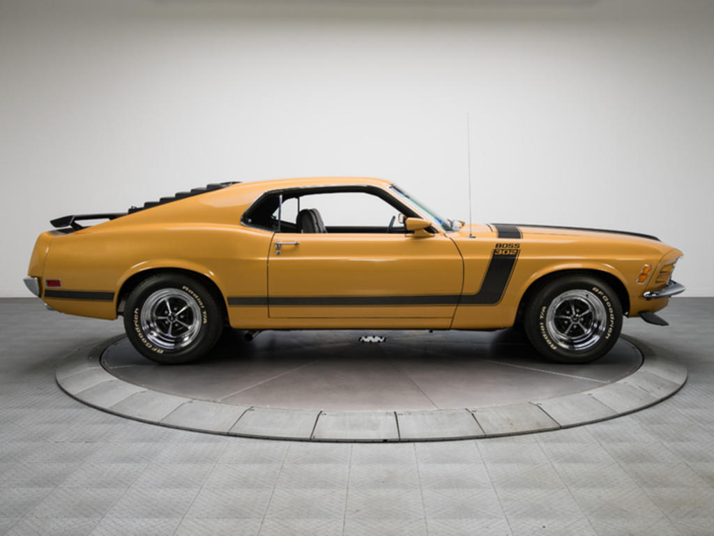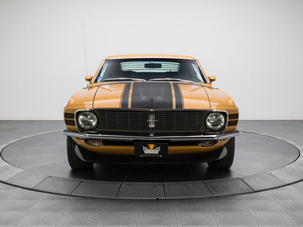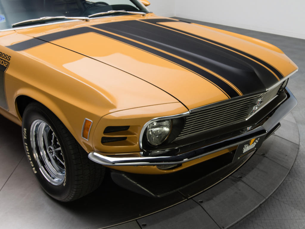| This 1970 boss 302, equipped with rare shelby dual-quad induction, is a fully documented, magazine-featured award winner that's considered the ultimate small block Mustang. If you're a prospecting enthusiast who's looking for long-term gains via a pristine example of one of the finest pony cars ever produced, this world class Ford is the classic you've been craving! Not too long ago, the car's solid body was the beneficiary of a thorough restoration that primed bare, mostly original metal for a correct and glossy coat of bright gold metallic two-stage. Once that even pigment was buffed to an excellent shine, a full array of factory war paint tapped into an aggressive demeanor that's both classic and fitting. And today, the car sits as a revered collection of well-aligned panels and ridged character lines that presents a stunning, show worthy appearance. Never disassembled, and still churning to factory specifications, this Ford's 302 cubic inch windsor small block utilizes cleveland-style heads, a race prepped crank, a solid lifter cam, heavy duty rods and forged pistons to create over 290 horsepower. Behind that motor, a wide-ratio 4-speed spins a correct traction lok differential around competent, road-ready gears. At the ends of that drivetrain, standard manual steering combines with power front disc and rear drum brakes to provide competent track capability. In the middle of the floors, a fresh true-dual exhaust system pipes roasted dinosaurs through an h-shaped crossover and thin, glasspack-style mufflers. And at the sides of that exhaust, mirrored magnum 500s twist meaty 245/60r15 bf goodrich radial t/as around galloping horse center caps. This professionally restored boss is a documented, fully-sorted gem that drives and sounds every bit as good as it looks. If you're a dedicated purist who desires only the best, call, click or visit for your chance to own the ultimate muscle car! |