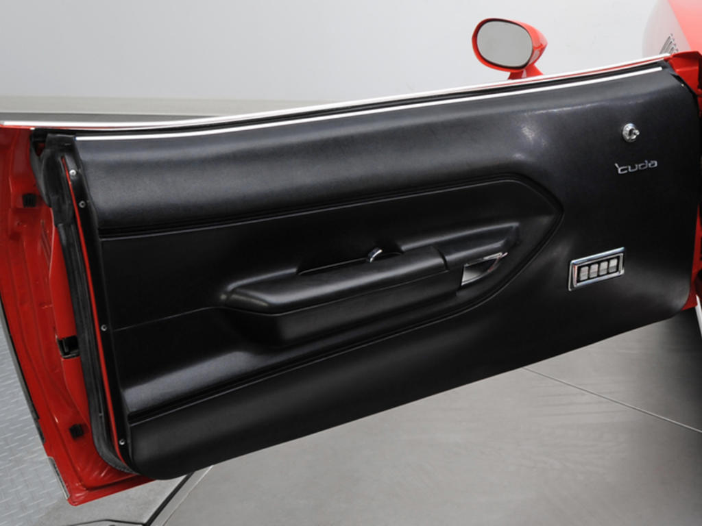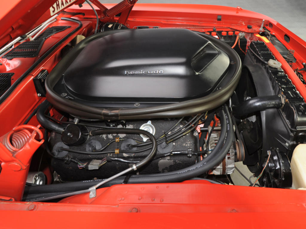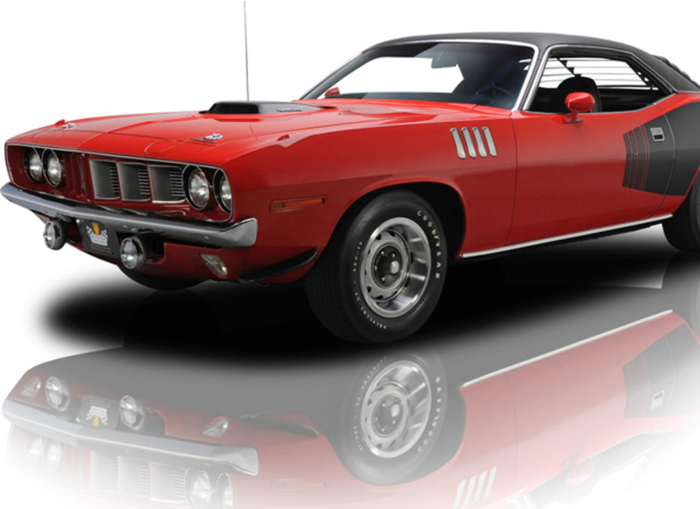 | The all-original time capsule 'CUDA you see here was custom-ordered by one of north carolina's most fearless backwoods daredevils, and spent most of its life sitting in his world-class car and motorcycle collection. Not only is the car packed full of rare and unique options, it's also equipped with a top-of-the-line, high performance drivetrain, still covered in original paint and still cradling a 2,010 mile hemi v8! Being the heir to the reynolds tobacco empire, and having an avid love of winston cigarettes, zach predictably ordered his brand spankin' new 'CUDA in chrysler's fe5 rallye red lacquer, a v1x black vinyl top and v6x hemi billboards. When the car arrived at ed owens' dealership a few touch ups were performed on its hood and fenders, 70s assembly line quality being what it was, and the black billboards were automatically accented with white hemi letters and white outlining stripes that continued onto the car's profile. It was only after a high caliber mopar collector steven juliano bought it from a north carolina museum years later that the car was returned to 100actory luster. Under the hood, an all-original, low-mileage hemi which wears a correct 2468330-2 casting number above a matching 295999 partial vin. That high powered big block spins an original a727 torqueflite 3-speed automatic transmission that's branded with a correct 3515849 barraCUDA code and a matching 295999 partial vin. That heavy duty gear slinger churns torque through an optional dana 60 rear end that's still equipped with a tough sure grip differential, killer 4.10 gears and an original factory paper strap that's branded with a build sheet matching 026 part number. And at the corners of that drivetrain, original 15 inch rallye wheels spin original f60-15 goodyear polyglas gts. If you're looking for the absolute ultimate muscle car that's guaranteed to please the most discerning collector and serve as the perfect centerpiece to any collection, here's your ace in the hole! |