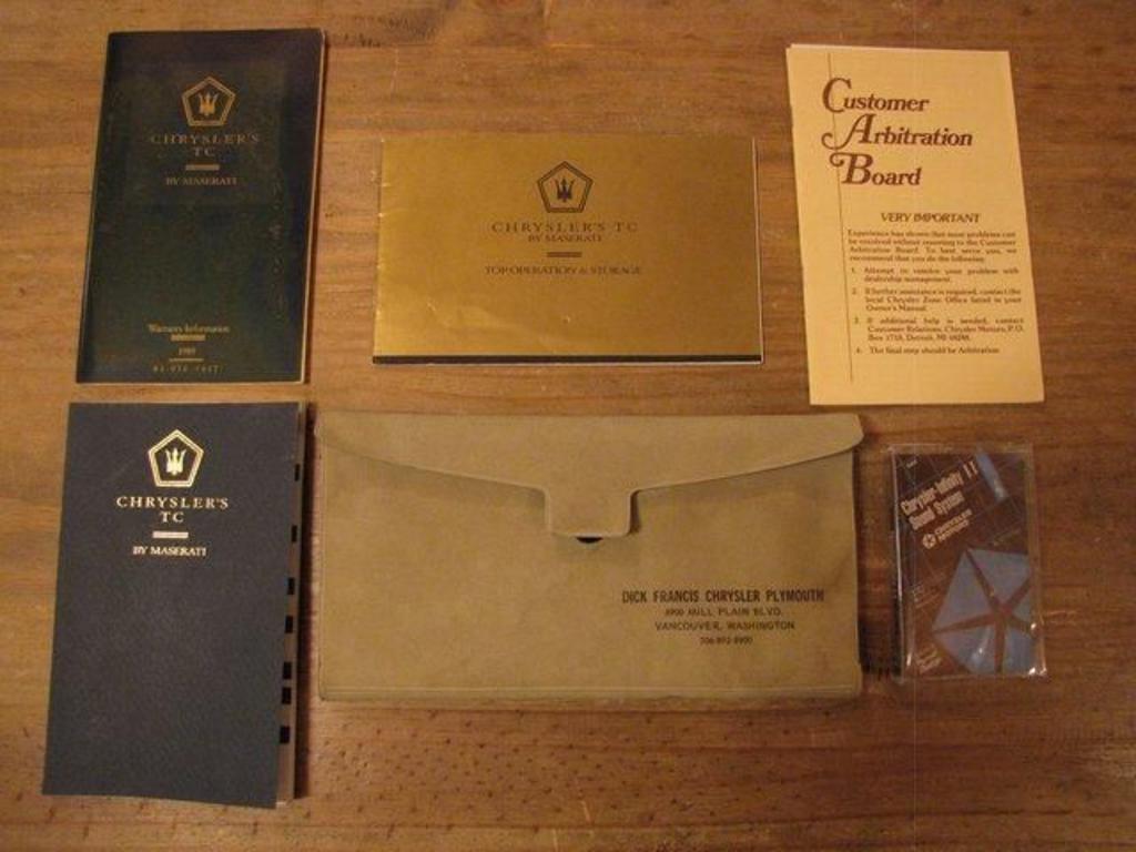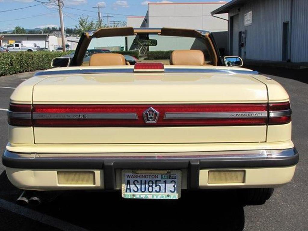 | 1989 chrysler tc maserati - local 2 owner car that just turned 60,000 actual miles. These limited production cars were built by maserati in italy and then shipped here for the chrysler drivetrain to be installed and sold by chrysler dealers. Turbocharged 2.2 liter 4 cylinder engine and automatic transmission. They were all fully equipped with air conditioning, power everything, tilt wheel, cruise control, infinity sound system, full gauge package including tachometer and full leather bucket seat interior. There's a black folding soft top with a glass rear window and also a removable hardtop. This car was recently serviced with new tires, struts, timing belt, air conditioning recharge, transmission service and tune-up. Originally sold at dick francis chrysler-plymouth in vancouver washington and meticulously maintained by both the first and second owners. All of the original books and manuals remain with the car. Turn key ready to drive anywhere. |