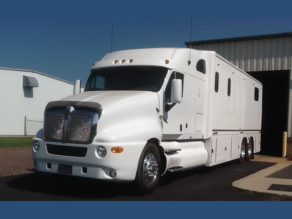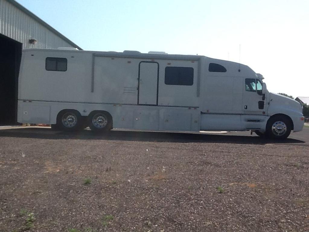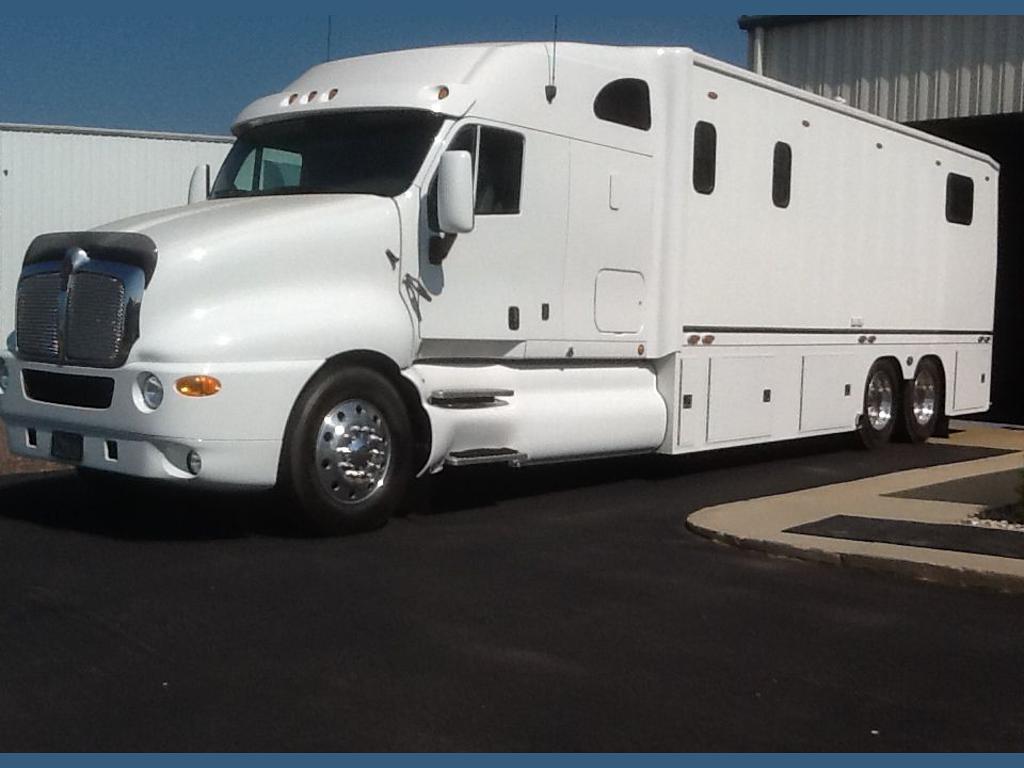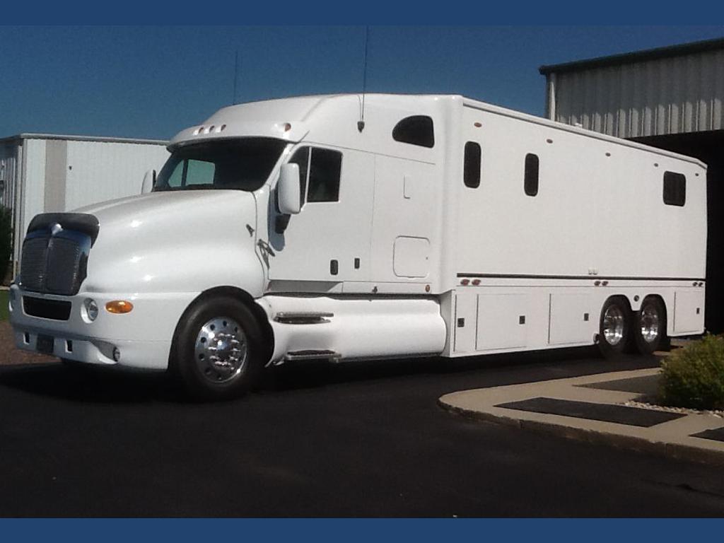 | 2004 motor coach custom - 500hp cat c 15, 12 speed merator automatic transmission, two live rear axles, 10,000 watt generator, fully handicap accessible with wheel chair lift, tile floors and shower, queen bed, custom made solid wood hickory cabinets, full leather interior. This coach is brand new, has only 9,670 miles, stored in a climate controlled building. Completely custom built. For more information call . |