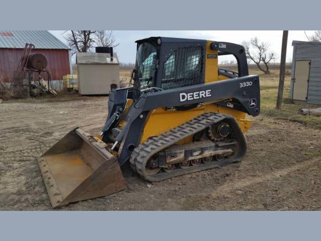 | 2012 john deere 333d - 2012 john deere 333d skid loader. $68500 or best offer-any reasonable offer will be considered. 2012 john deere 333d skid loader in great mechanical condition-two-tone yellow and black exterior plus a black cloth interior-equipped with an 89hp 5-cylinder diesel engine and a manual transmission-currently with 1175 operating hours on it.. Cab enclosure with air conditioning within-heater and defroster-eh joystick controls-air ride seat-18 foot long rubber tracks-quick attach-high flow hydraulics with self leveling system-auxiliary hydraulics-am.fm radio stereo system.. This is a must see skid loader and everything works well-serious inquiries only. Currently located in vienna sd.-qualified buyers may be eligible for financing nationwide shipping and extended warranties. Stock number: h112013e |